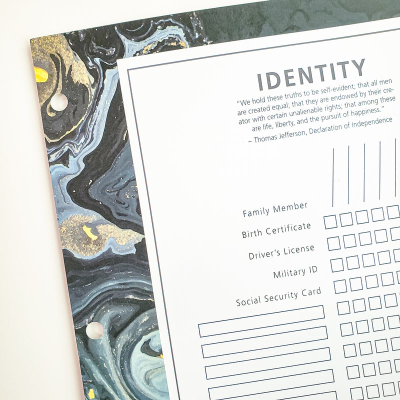 - Pre-printed with over 40 "essential" documents, with space for dozens more